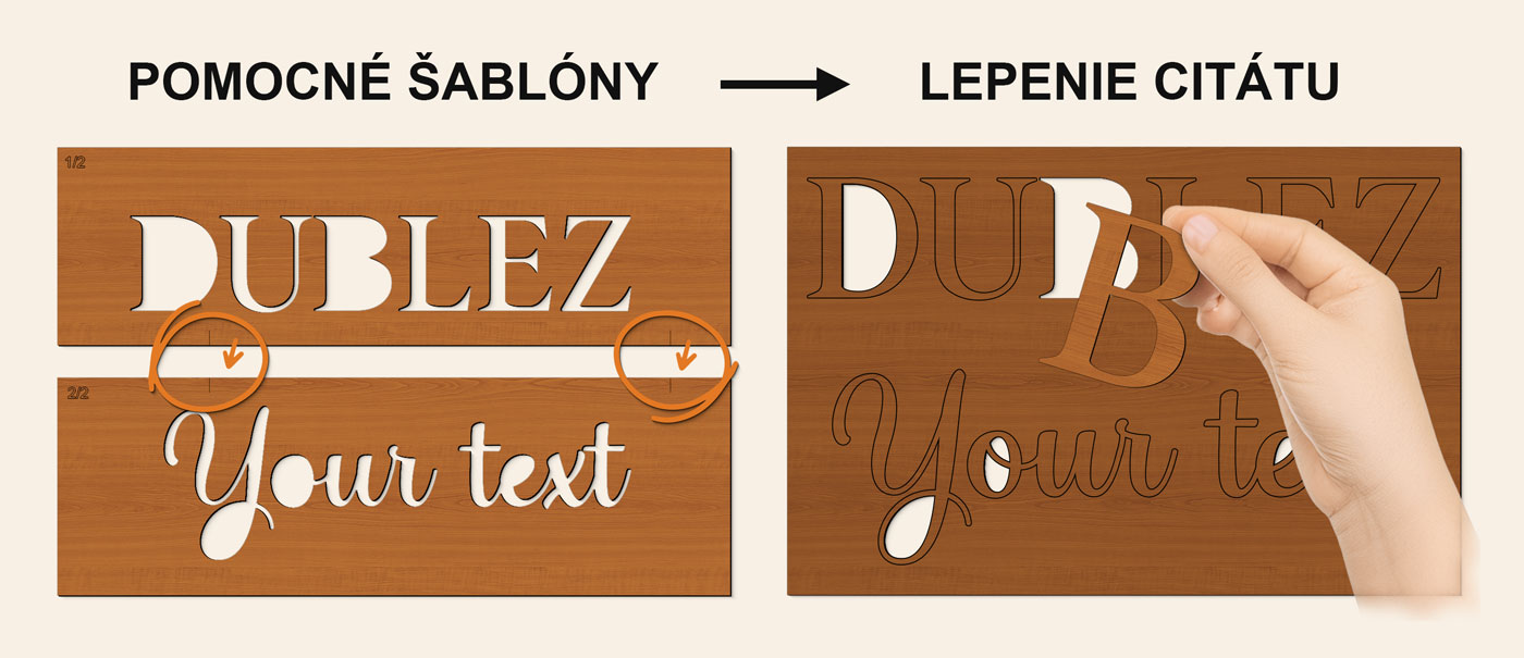 - Az idézet egyes részei egy áttetsző transzferfólia segítségével rögzíthetők a sablonhoz. Ez a fólia lehúzható, és az idézet egyes részei kiesnek a sablonból.