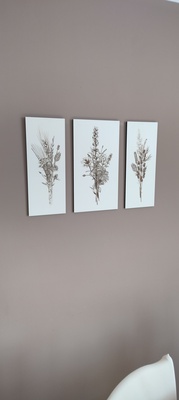 Modern fa faliképek, melyek virágokat ábrázolnak. A nagy képek tökéletesen illenek a konyhába vagy az étkezőbe. Háromrészes virágkép-sorozat, amelyet kedvezményes áron lehet megvásárolni. A faképeket együtt hagyhatja, mint egy sorozatot, vagy mindegyiket külön-külön másik falra akaszthatja.