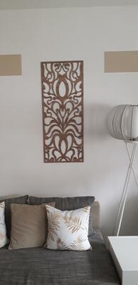3D dekor fali panel - A Zahra egyedi luxust, extravaganciát, művészetet és finom részleteket kölcsönöz szobájának. Ez a kép tökéletes szimmetriát és rejtett szimbolikát hordoz magában. A panel fából készült, és különleges lakberendezési kiegészítővé válik a nappalijában. Stílusos kiegészítő a falán, amely minden szemet gyönyörködtet. A 3 mm vastagságának köszönhetően a panel 3D hatást kelt a falon.