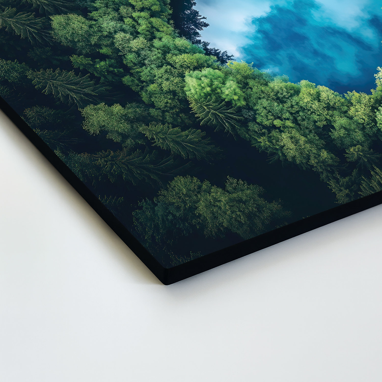 Ez a fa falikép egy erdőt ábrázol, amely hihetetlenül nyugtató atmoszférát teremt az otthonában. A szív alakú fák kristálytiszta tavat ölelnek körül, amely a természet iránti szeretetet és békét szimbolizálja. Részletgazdag kidolgozása és tartós színei miatt ez a kép tökéletes kiegészítő lehet nappaliba, hálószobába, irodába vagy tárgyalóba.