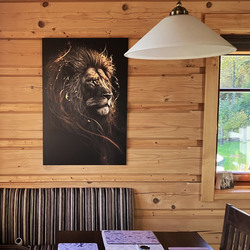 Lenyűgöző oroszlános kép ragyogó arany és fekete színekben, amely erejével és fenségességével tűnik ki. Az oroszlán képe a vad természet hangulatát hozza el, és tökéletesen illik bármilyen belső térbe, legyen az keleties vagy modern. Ajánljuk nappaliba, dolgozószobába vagy hálószobába, ahol a szoba központi elemévé válhat. Ez a kép egyedi ajándék lehet férfiaknak, akik az oroszlán jegyében születtek.