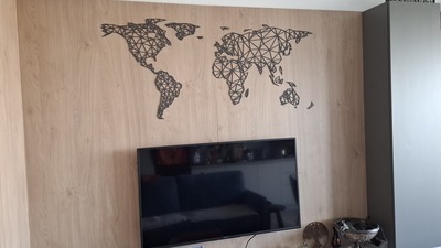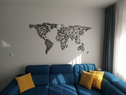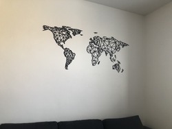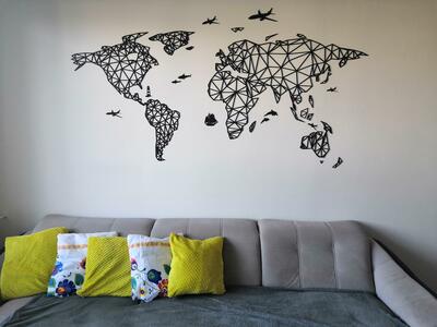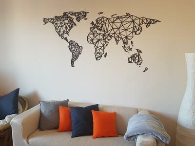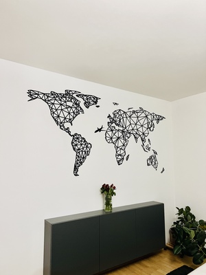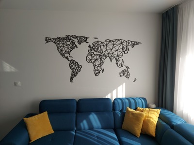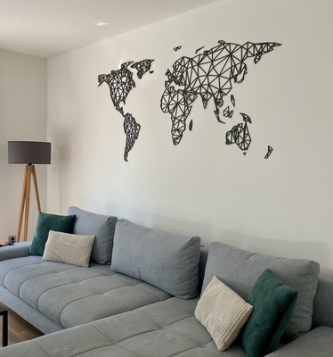 A falra szerelhető modern 3D világtérkép poligonális városi stílusban egyedi és modern kép, amely nem hiányozhat egyetlen szenvedélyes utazó otthonából sem.
