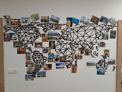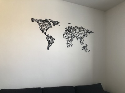 - Először mérje ki a falat, amelyre a térképet szeretné rögzíteni. Az Amerika és Eurázsia közötti távolság, vagyis az Atlanti-óceán, tetszőleges. Csak az számít, hogyan mutat jobban a falon.