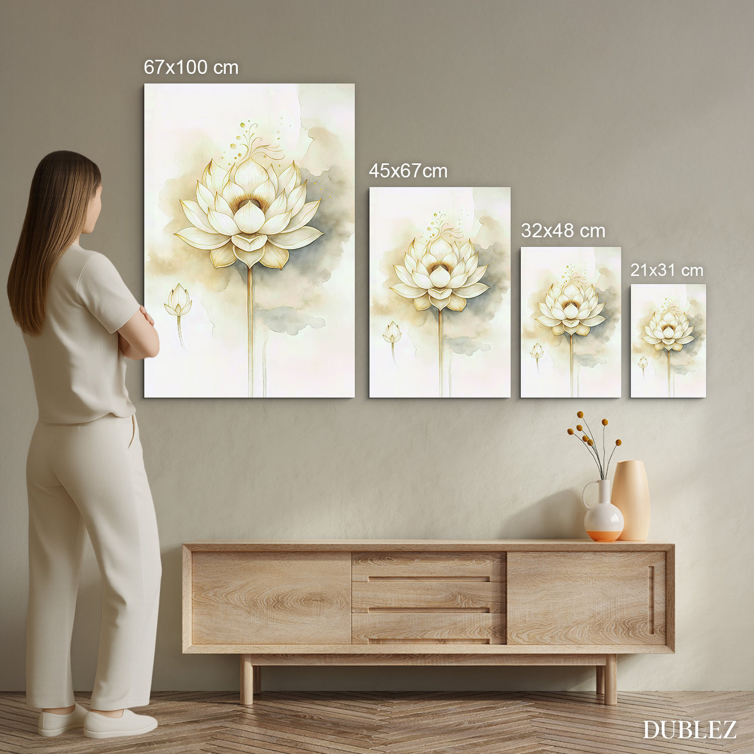 Falikép – Fehér lótusz finoman és gyengéden hat, hogy kiemelje minden belső tér szépségét. A modern lótuszvirág kép tökéletesen kiemelkedik a hálószobában, a nappaliban vagy a folyosón. A minimalista kivitelezés hangsúlyozza a kép luxus dizájnját, és időtlen kiegészítővé teszi, amely minden térbe illeszkedik.