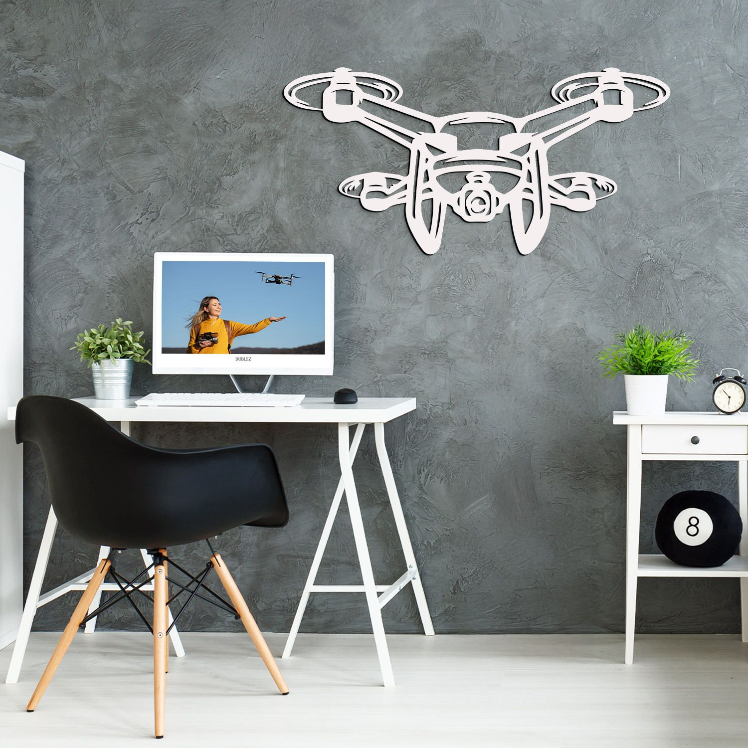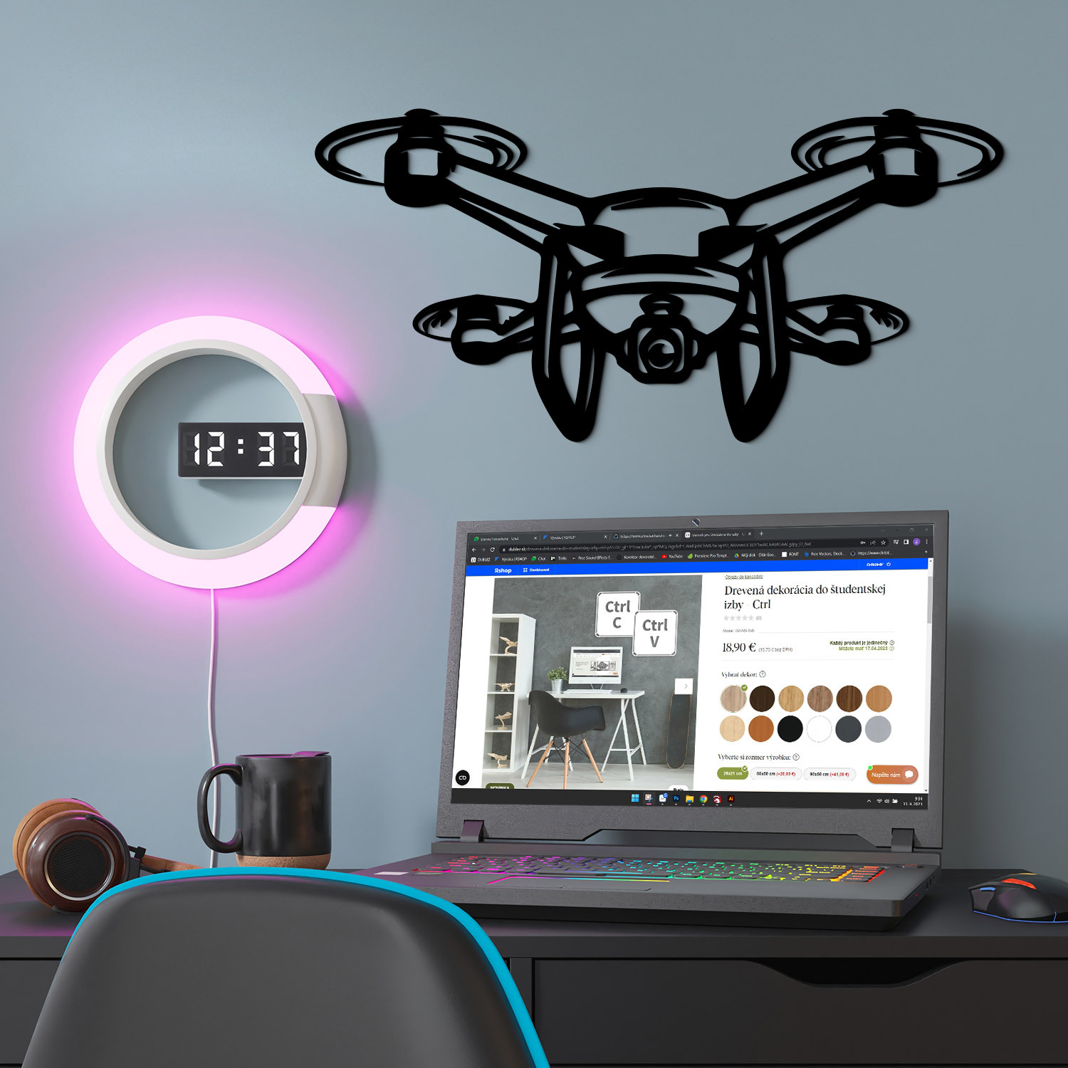 Fából készült drón kép egy eredeti dekoráció minden repülés és technológia rajongó számára. A drón precízen kivágott formája modern hatást kelt, és remekül illik a diák szobába, játékterembe vagy irodába. A tiszta fekete kivitelnek köszönhetően könnyen beilleszkedik bármilyen belső térbe. Ez egy kitűnő ajándék drón rajongóknak, pilótáknak vagy játékosoknak, akik valami különlegeset szeretnének otthon.