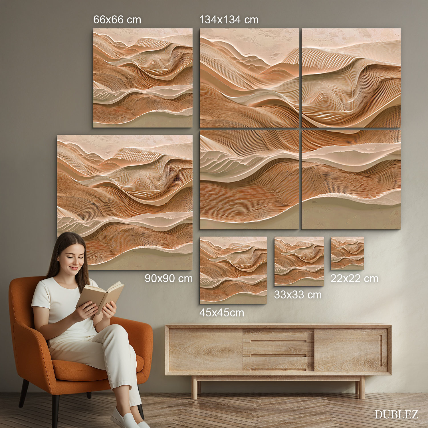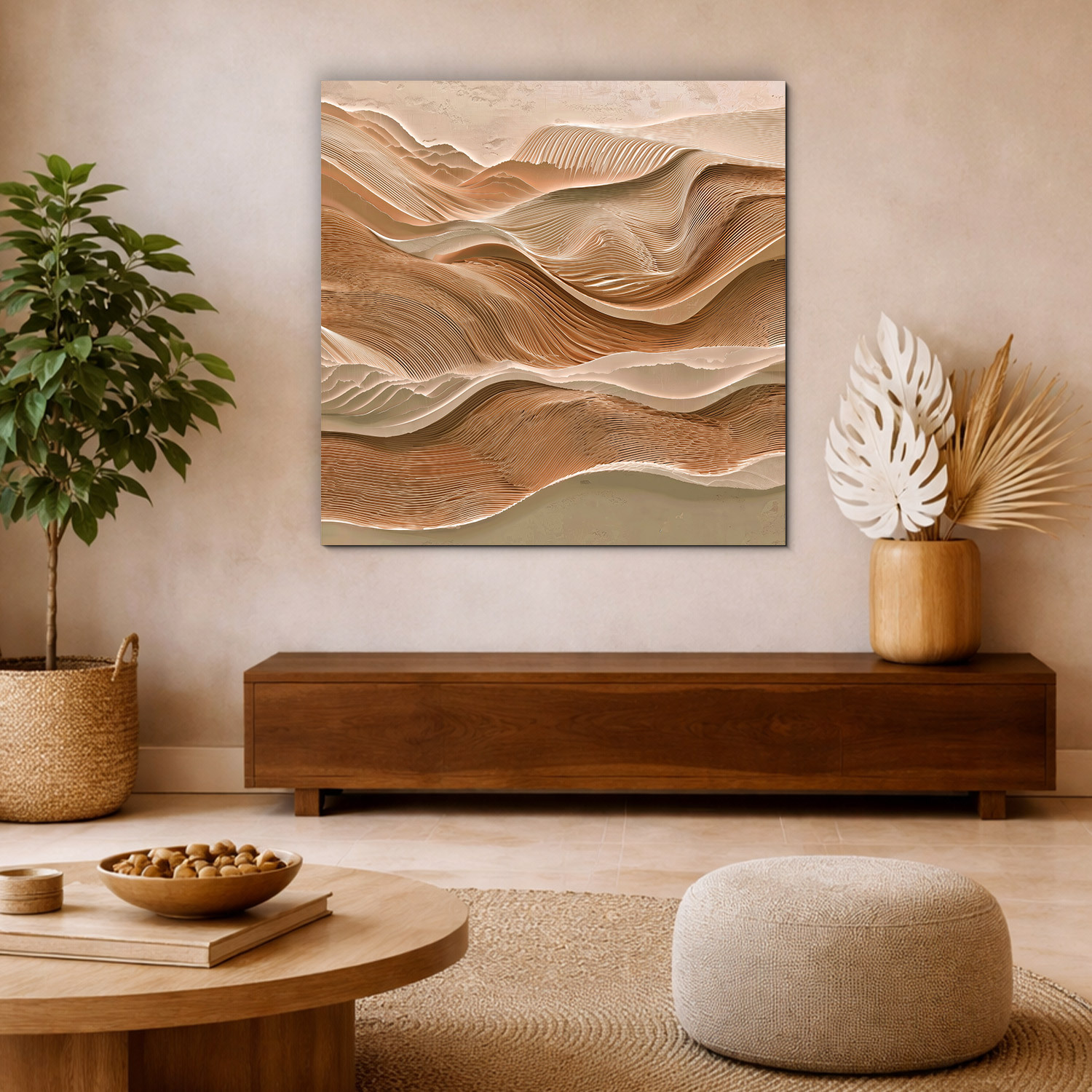 Fedezze fel a Geodis fa kép erejét. Egyedülálló abstrakció, amelyet a föld rétegezése és a végtelen dűnék ihlettek. A Geodis nem csupán egy egyszerű kiegészítő, hanem egy luxus falikép, amely szerkezetével és földszíneivel azonnal megváltoztatja bármely helyiség hangulatát. Ideális választás a Japandi stílus és a természetes anyagok kedvelőinek.