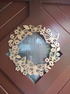 Egy szokatlan faanyagból készült nyári koszorú ajtóra, amely virágokat és pillangókat ábrázol, és minden otthon ajtaját díszíti. A fa koszorúnkkal eltérhet a hagyományos koszorúktól, és egyediséget adhat az ajtajának.