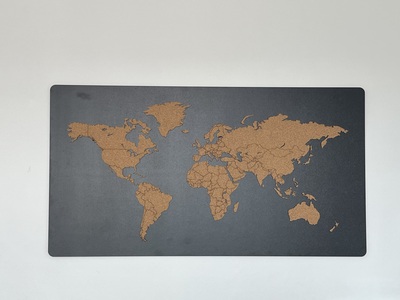 A kontinensek és szigetek parafából vannak kivágva, a kontinenseken belüli államok gravírozva vannak. A puha parafa miatt a termék stílusos tűzős világtérképpé válik, hiszen a kontinensek és szigetek erős parafából készültek. Így könnyedén szúrhat bele tűket, hogy jelölje azokat a helyeket, amelyeket már meglátogatott, vagy amelyeket még megszeretne látogatni.
