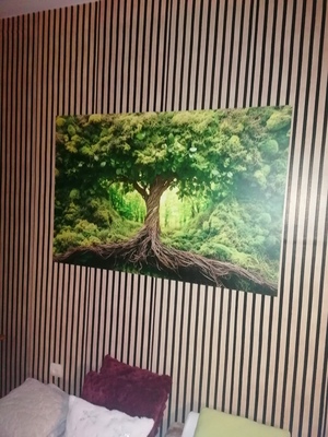 A zöld Életfa kép az érintetlen természetből nyugalmat és az erdő energiáját hozza el otthonába. Részletesen nyomtatott moha, levelek és gyökerek lenyűgöző 3D hatást keltenek, amelytől a kép szó szerint megelevenedik a falon. Különösen jól mutat a nappaliban, hálószobában vagy az előszobában. Tökéletes ajándék természetkedvelőknek, a békés otthon és az ökotudatos dizájn szerelmeseinek.